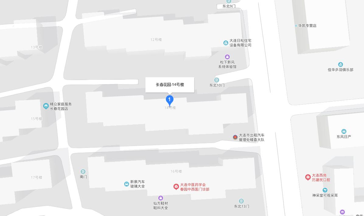 地址:大連市西崗區(qū)珠海街長春花園14號樓1-9公建